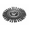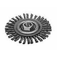 For maximum weld cleaning in confined area, the narrow faced Stringer Bead Wheel provides aggressive action. A tight twist provides the narrow profile with the required stiffness to clean pipe joints in fabrication shops and pipeline maintenance. Stringer Bead Wheels are available in both carbon and stainless steel. This Stringer Bead Wheel is designed for use on 4-1/2 or 5 inch Milwaukee and competitive Grinders with 5/8-11 threaded spindles. Made of carbon steel.